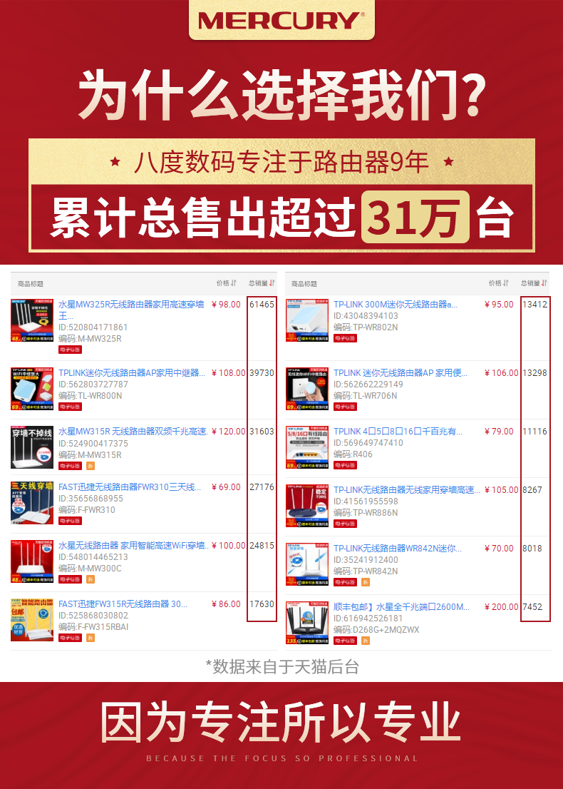 • 商品名称:顺丰包邮】水星无线路由器家用高速穿墙王双频智能wifi全千兆端口百兆网络宽带迷你无限漏油器大小户型放大器