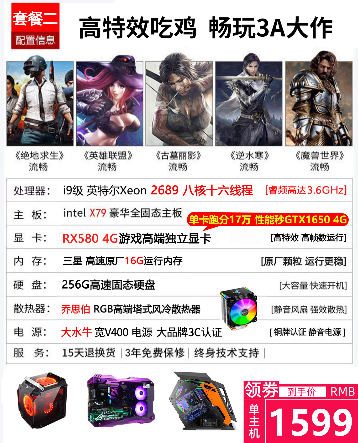 • 商品名称:i7八核水冷吃鸡游戏主播电脑多开3D渲染建模网吧主机组装台式电脑
