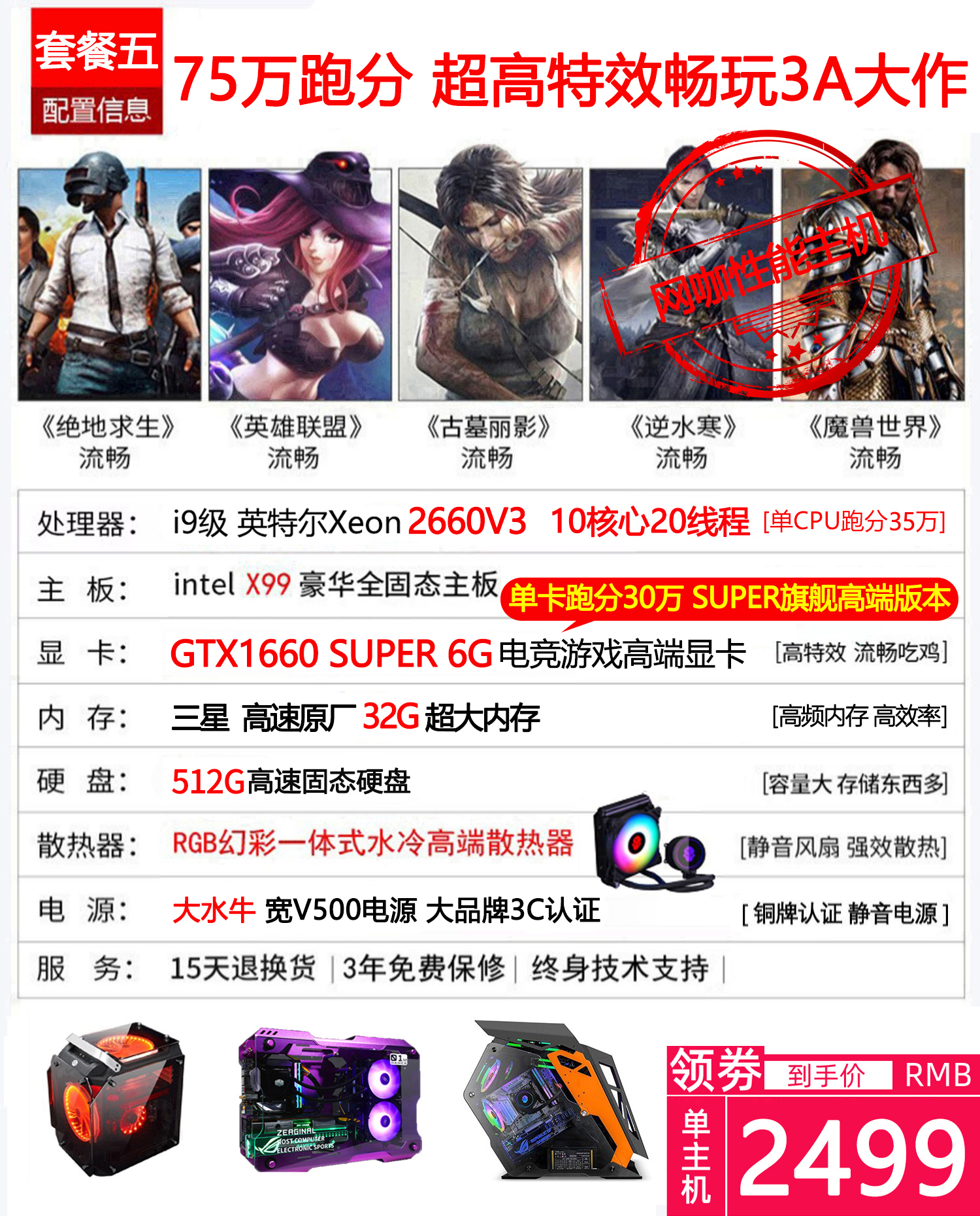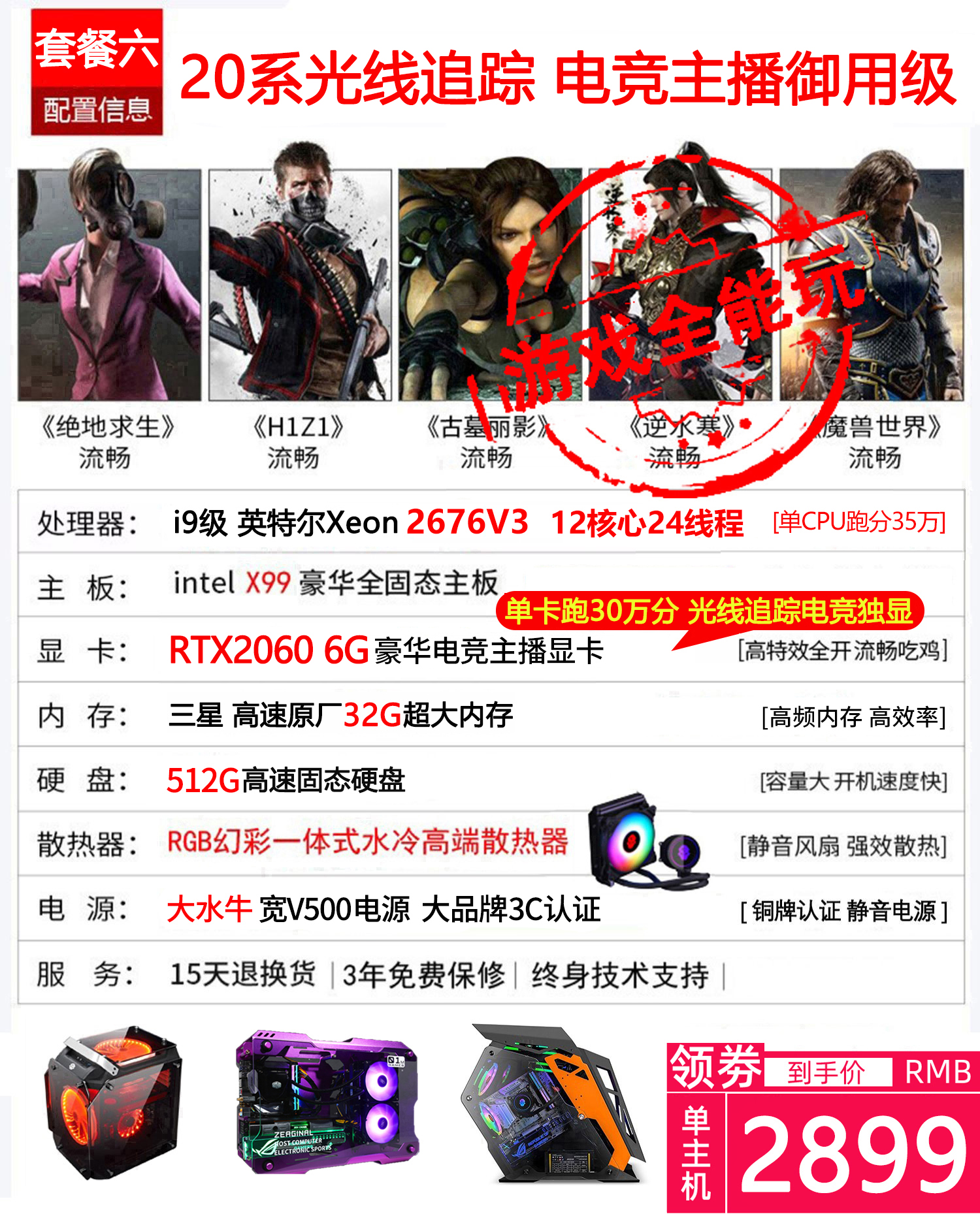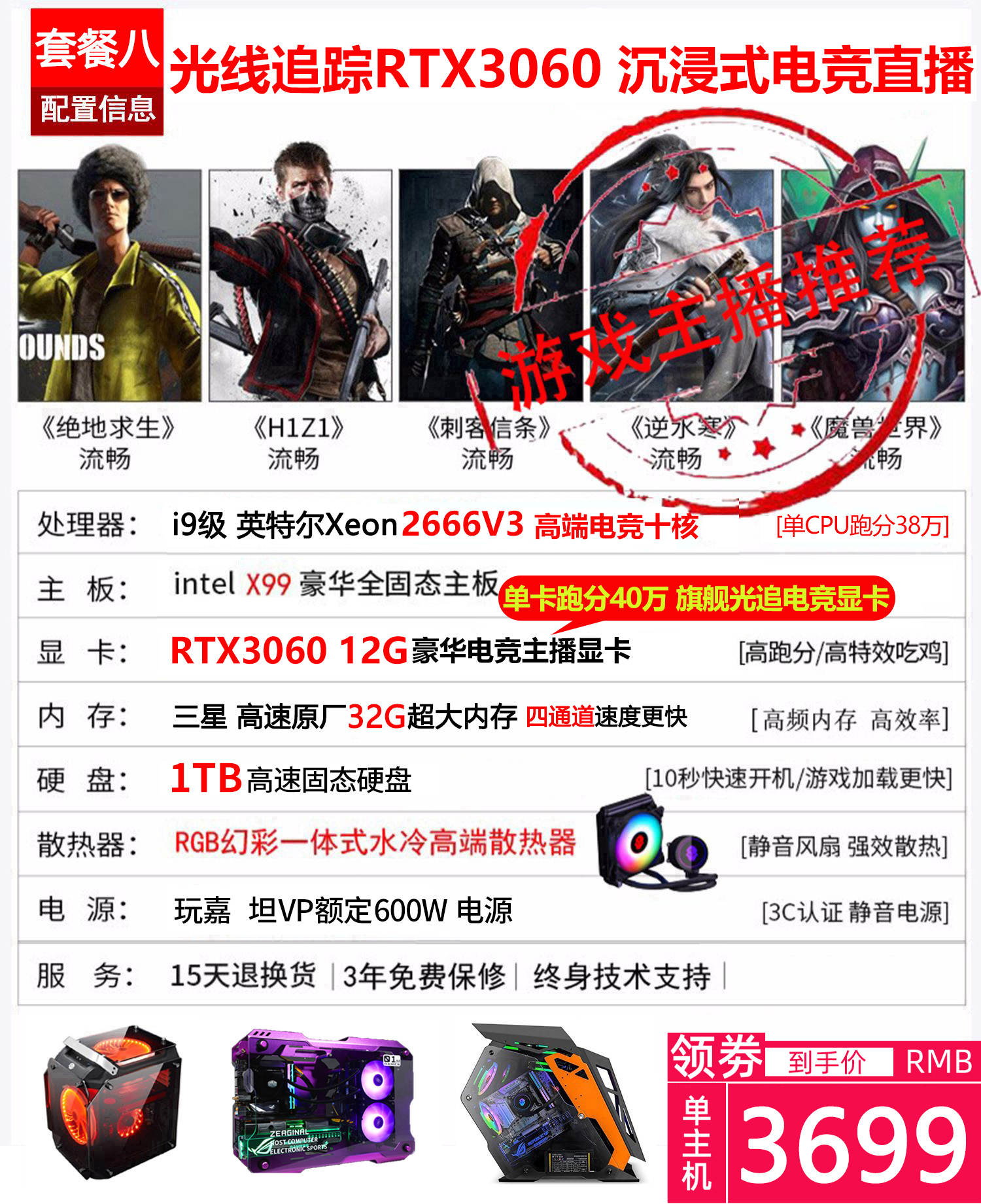 i7八核水冷吃鸡游戏主播电脑多开3D渲染建模网吧主机组装台式电脑