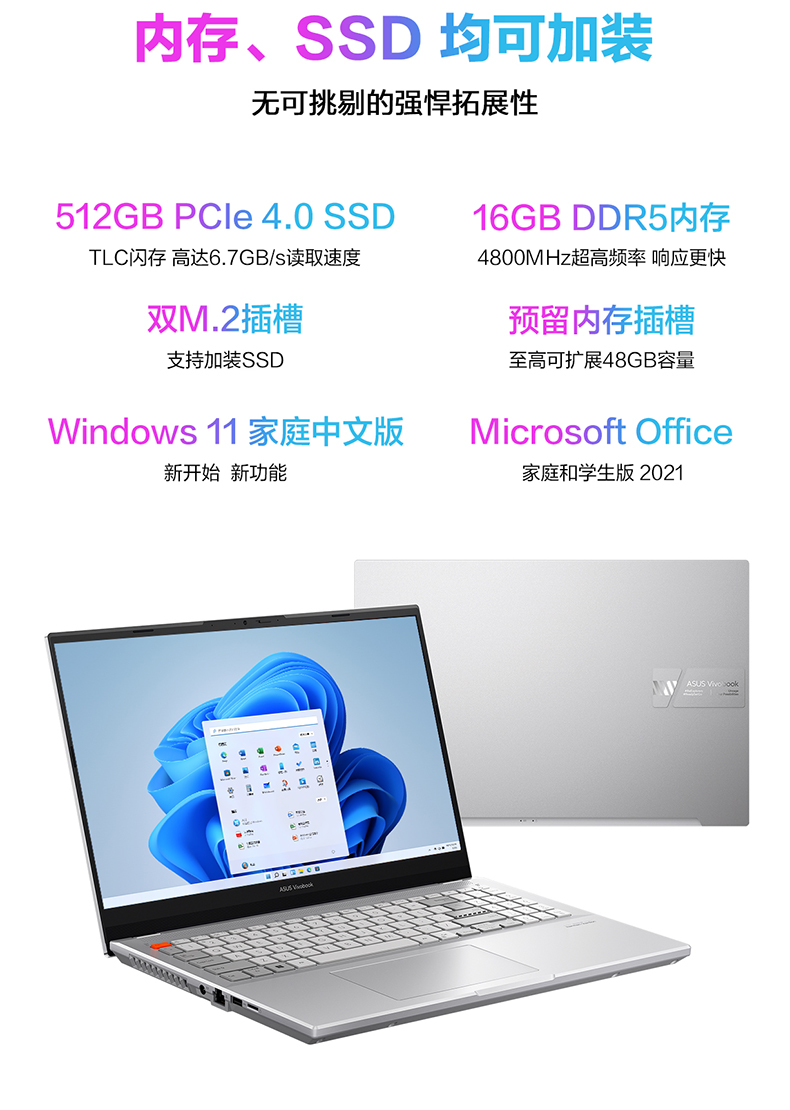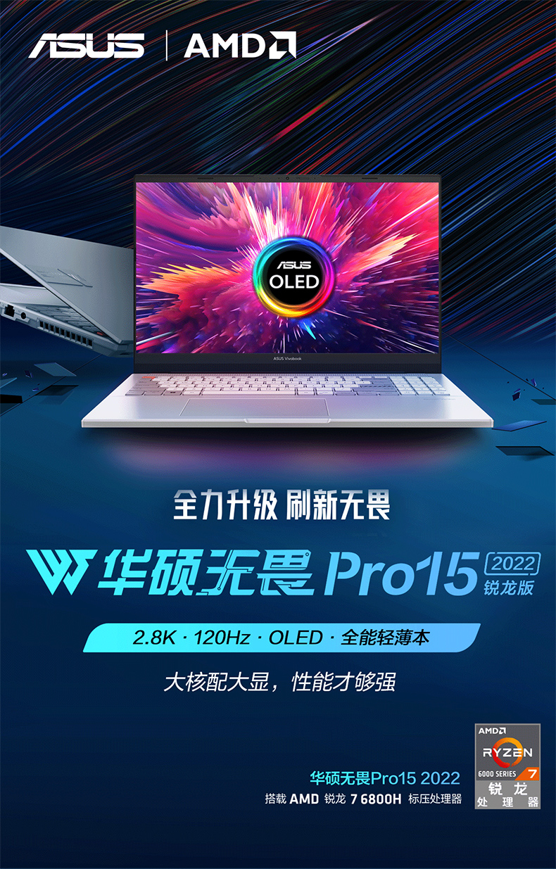【百亿补贴】华硕无畏Pro15 2022锐龙7 6800H标压轻薄游戏本2.8K屏120Hz RTX3060笔记本电脑办公官方旗舰店