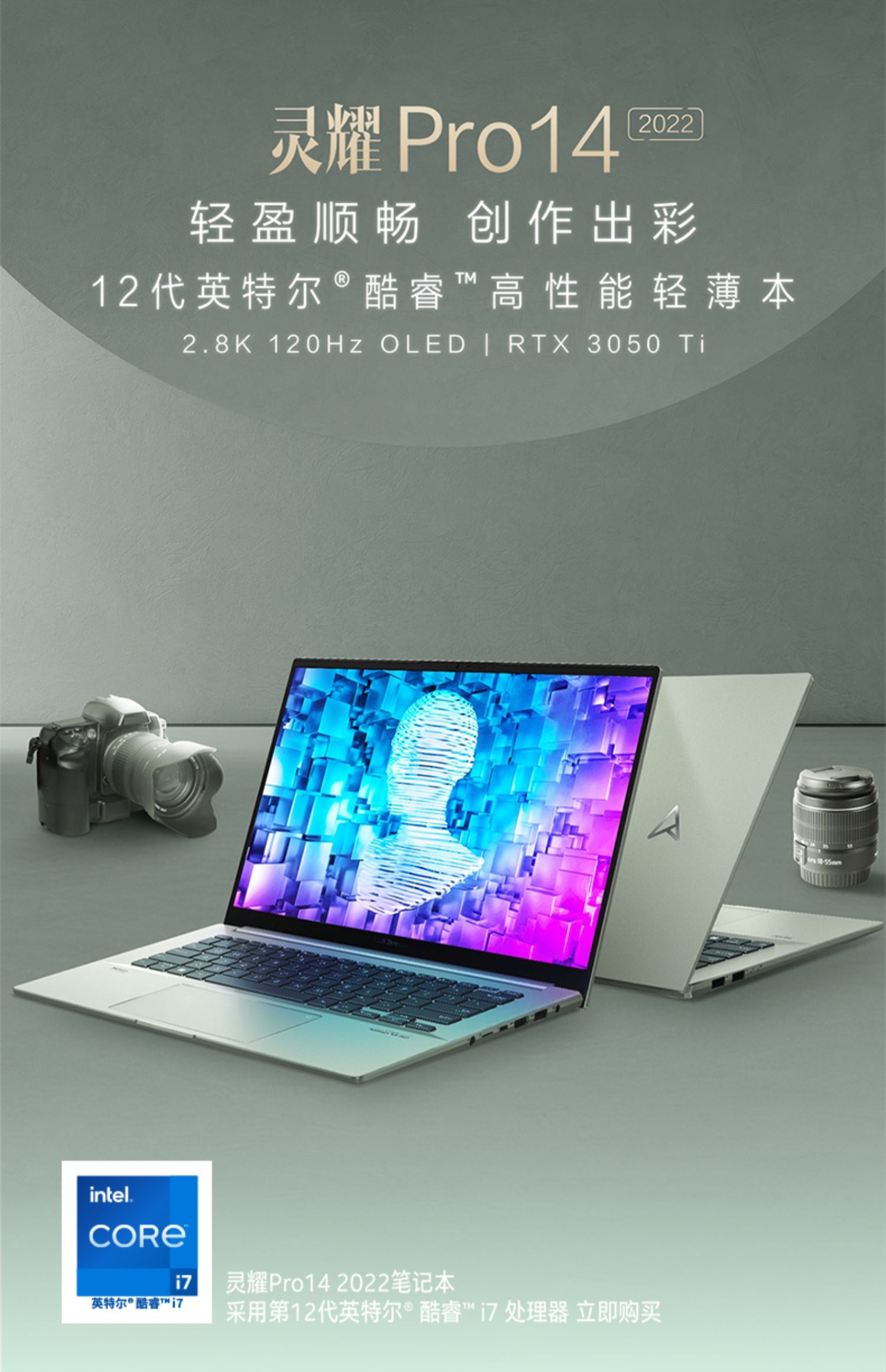 • 商品名称:【2022新品】华硕灵耀Pro14 12代英特尔酷睿i7 3050Ti 120Hz 高端性能设计商务游戏办公轻薄笔记本电脑