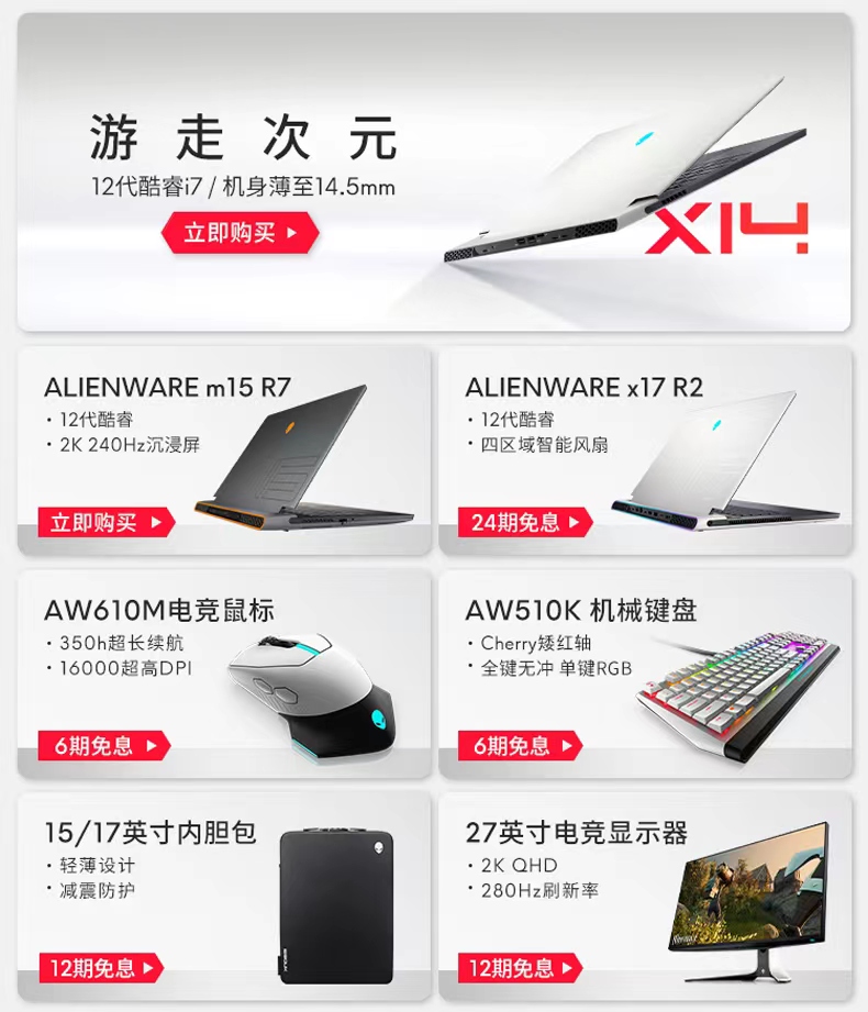 • 商品名称:【年度新品】ALIENWARE外星人x14轻薄高性能本14英寸游戏本高端笔记本电脑官方旗舰店设计本办公电竞新款学生