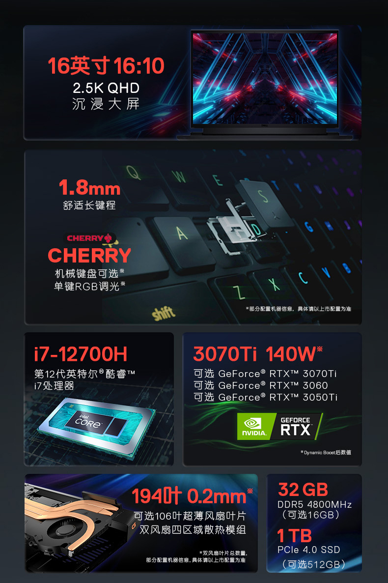 • 商品名称:【新品上市】DELL/戴尔 游匣G16 16英寸12代英特尔酷睿游戏本笔记本电脑手提学生3070机械键盘3060外星人G15