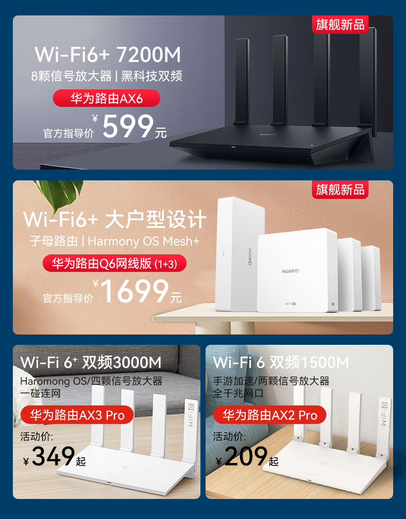 • 商品名称:【现货顺丰速发】华为AX6路由器WiFi6+家用千兆高速端口5G双频光纤大户型穿墙王7200M学生宿舍无线mesh路由器