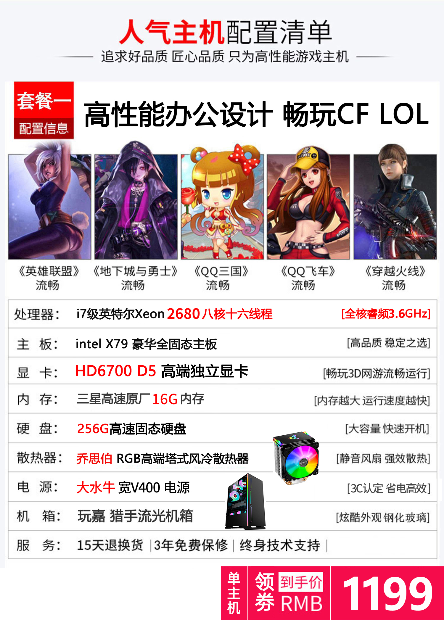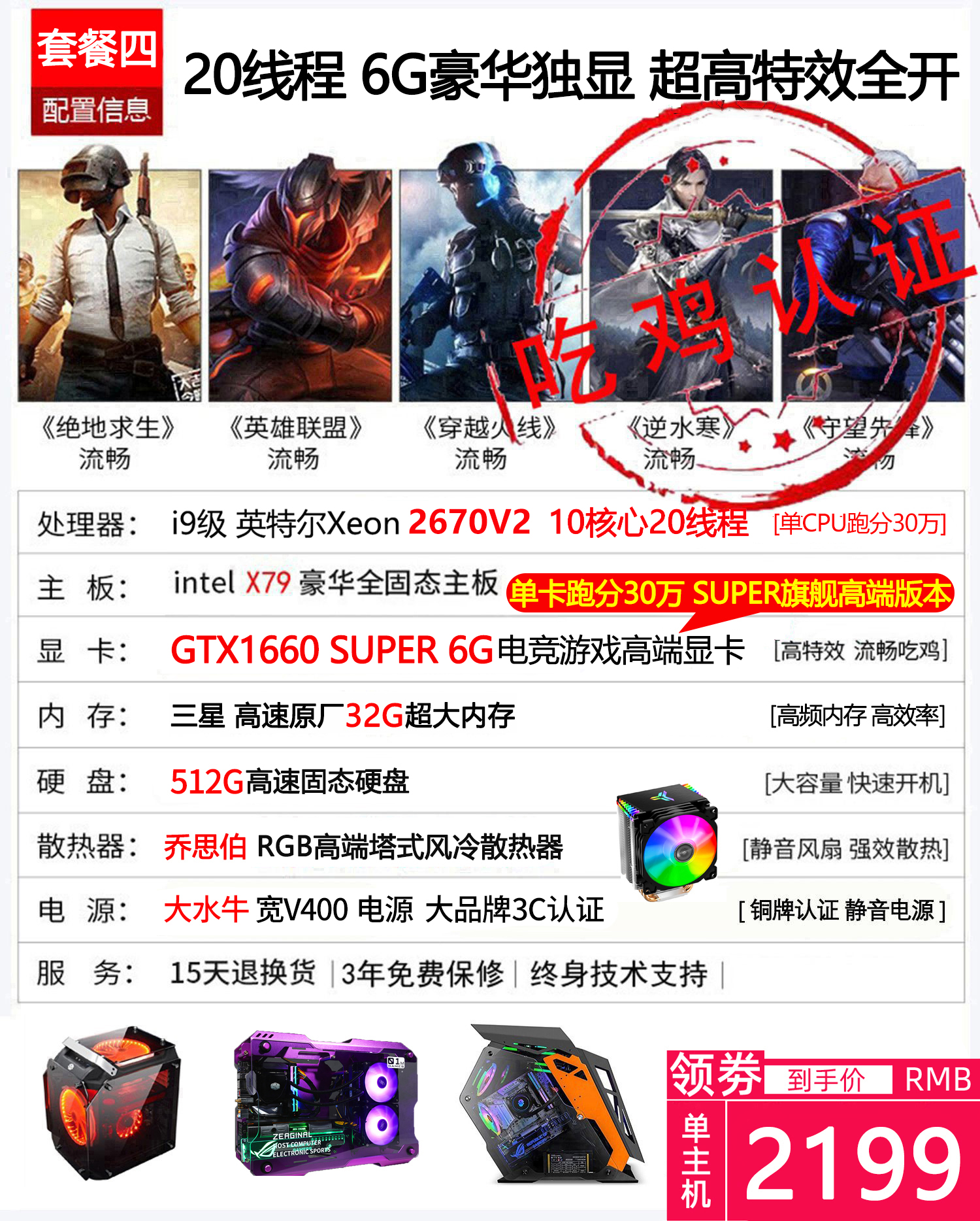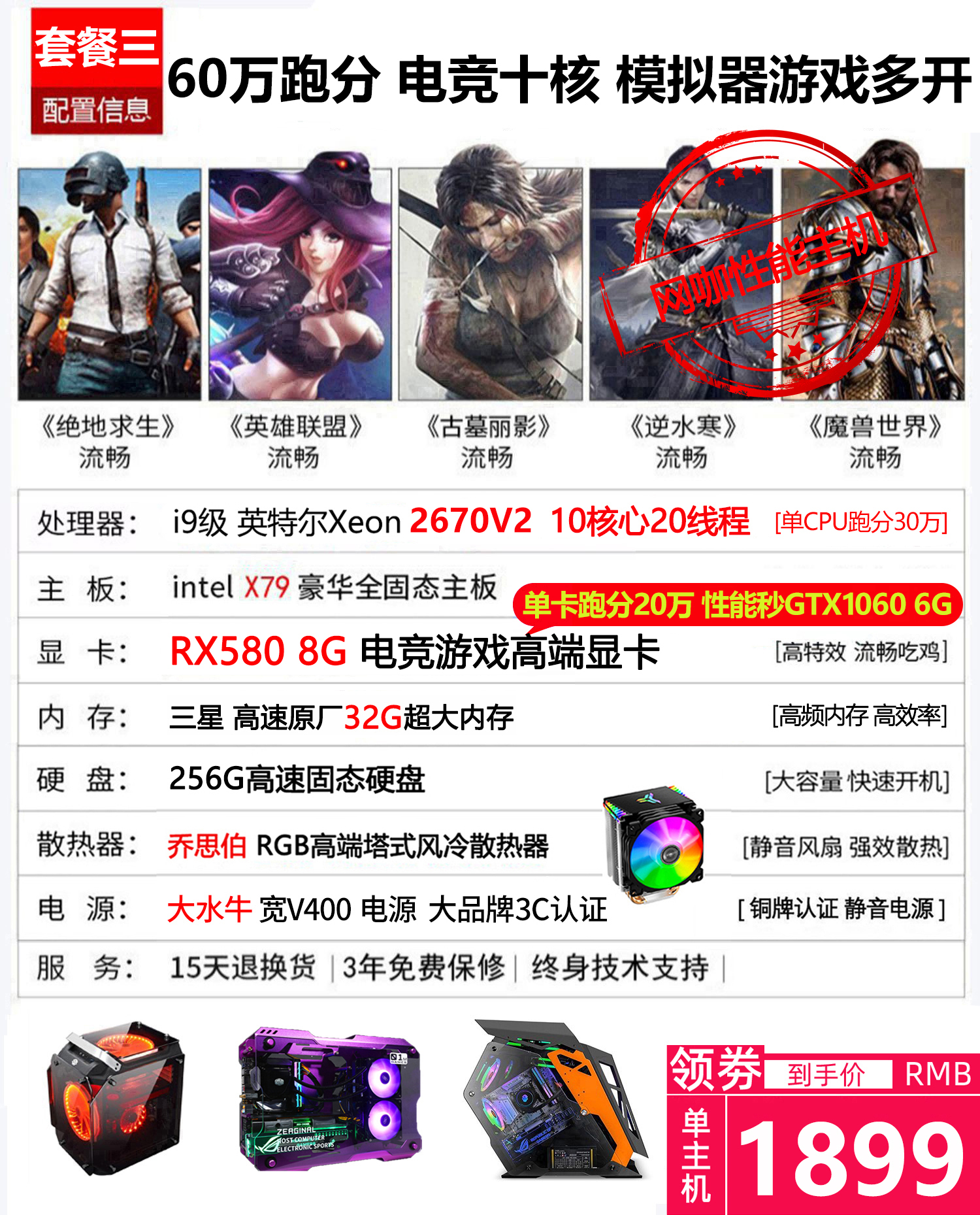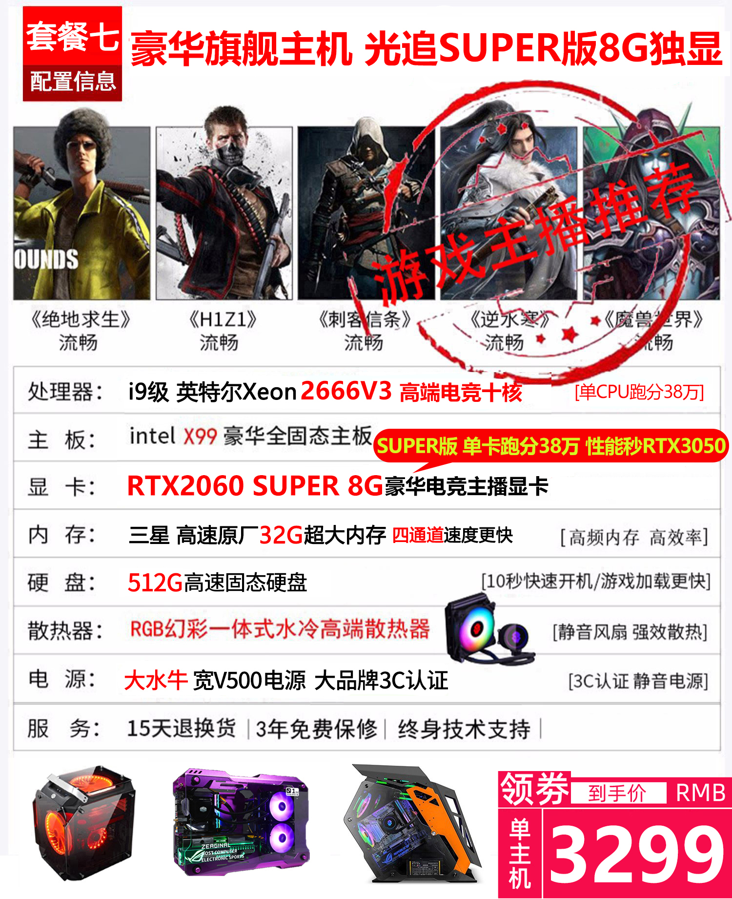 i7八核水冷吃鸡游戏主播电脑多开3D渲染建模网吧主机组装台式电脑