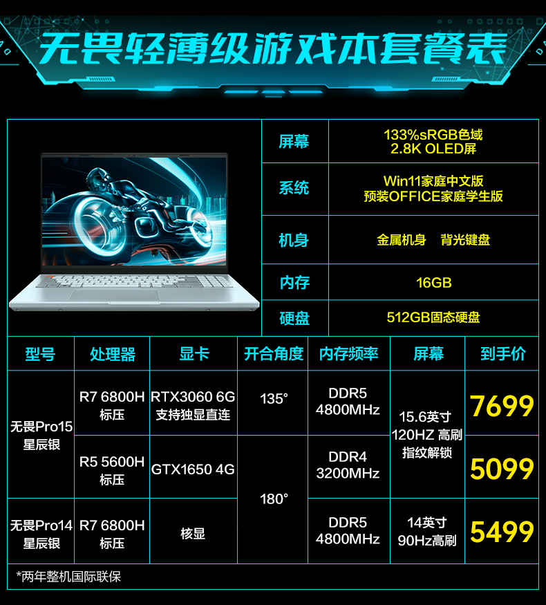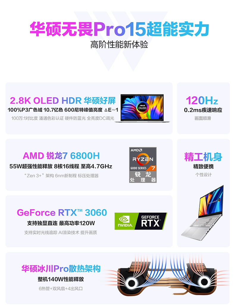 • 商品名称:【百亿补贴】华硕无畏Pro15 2022锐龙7 6800H标压轻薄游戏本2.8K屏120Hz RTX3060笔记本电脑办公官方旗舰店