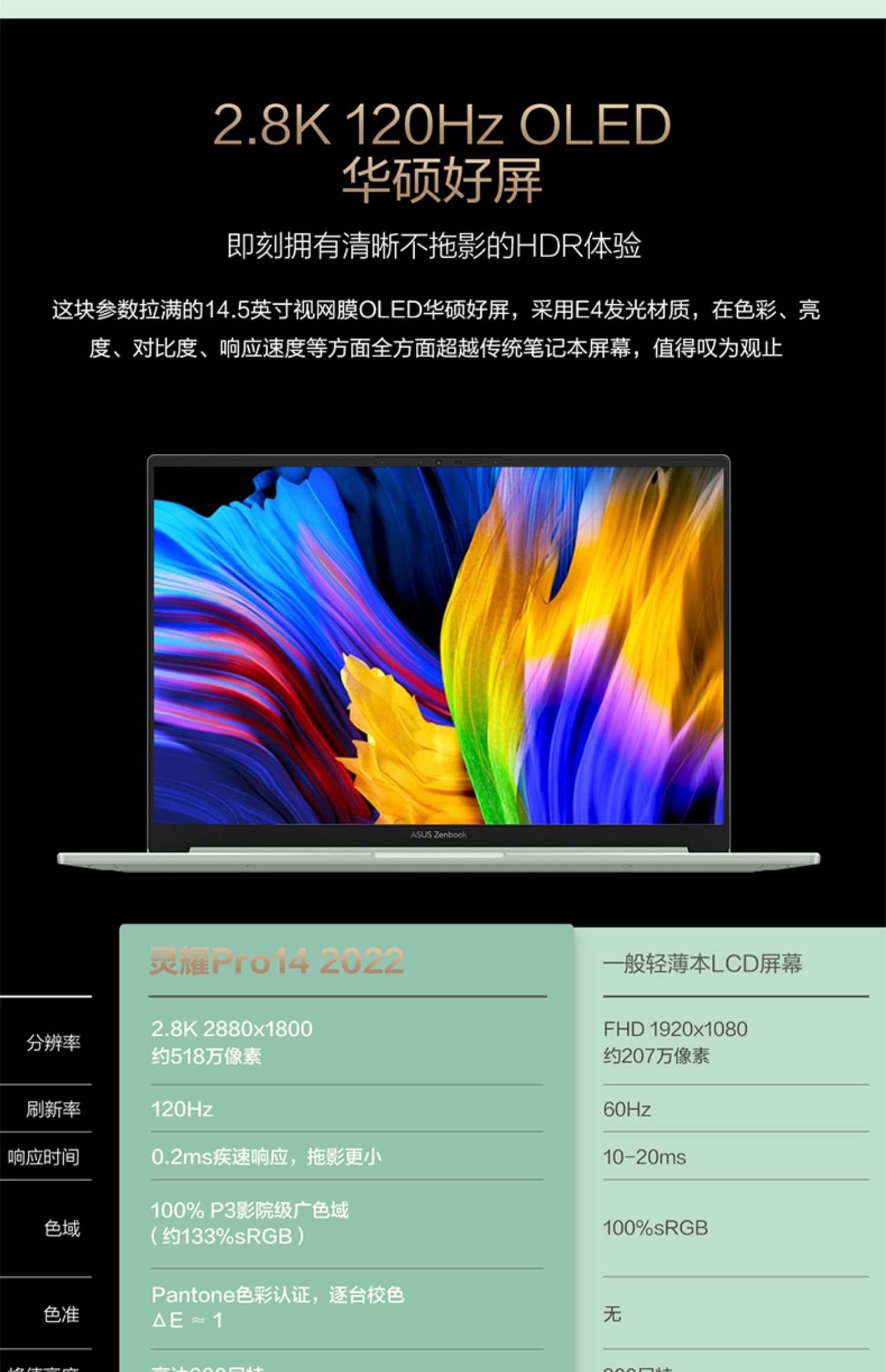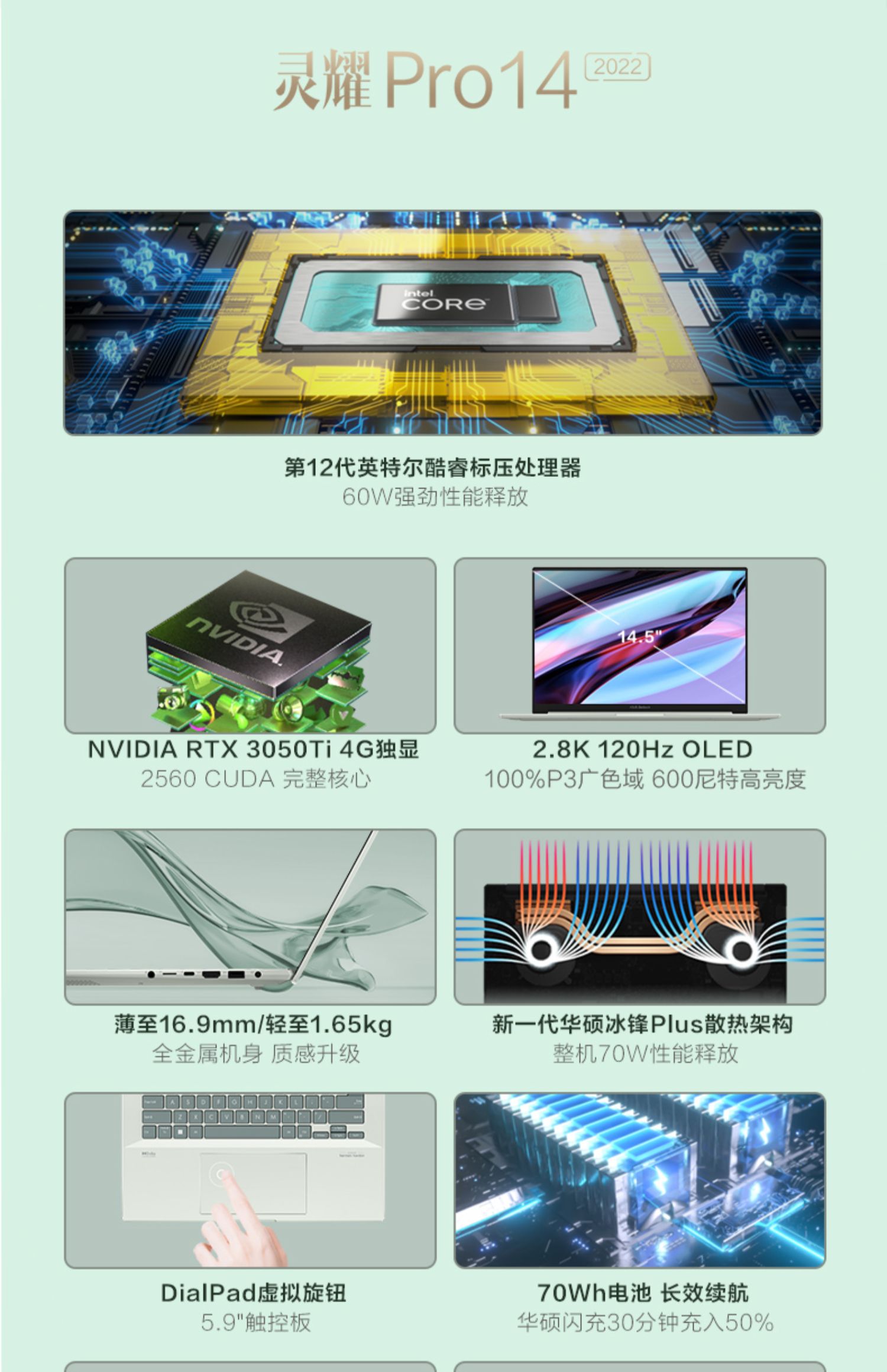 • 商品名称:【2022新品】华硕灵耀Pro14 12代英特尔酷睿i7 3050Ti 120Hz 高端性能设计商务游戏办公轻薄笔记本电脑