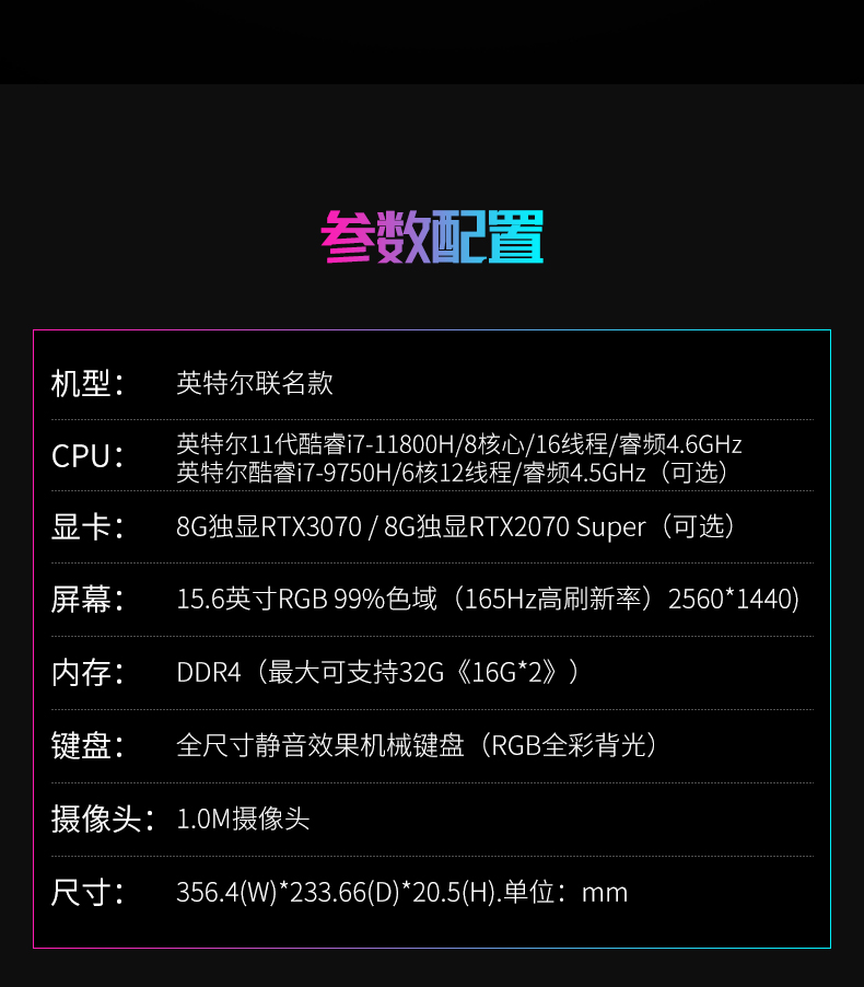 • 商品名称:2022年新款12代英特尔酷睿i5/i7游戏本笔记本电脑RTX3060独显卡高配置电竞240Hz屏幕轻薄便携手提学生设计本