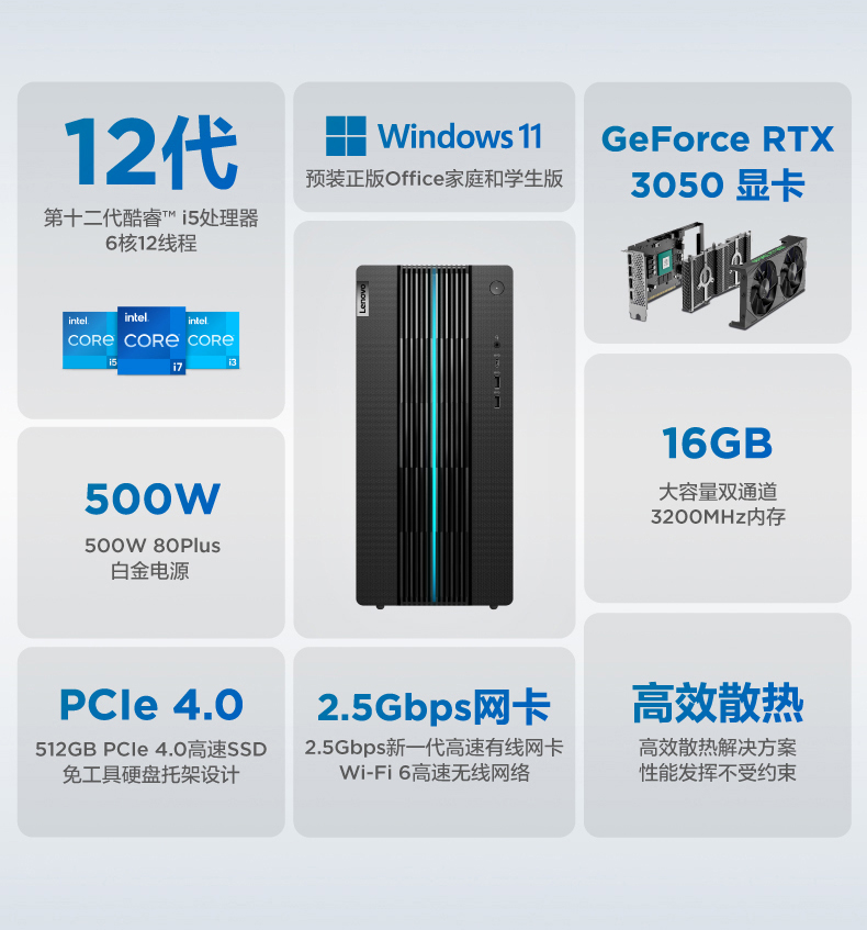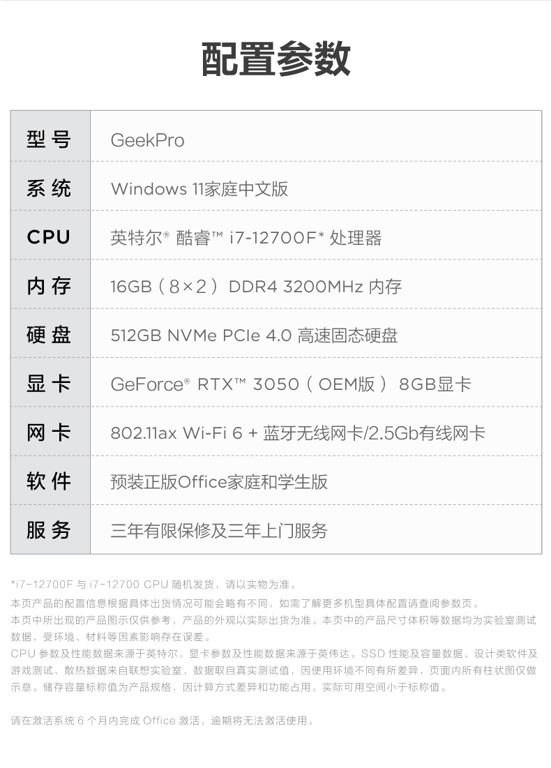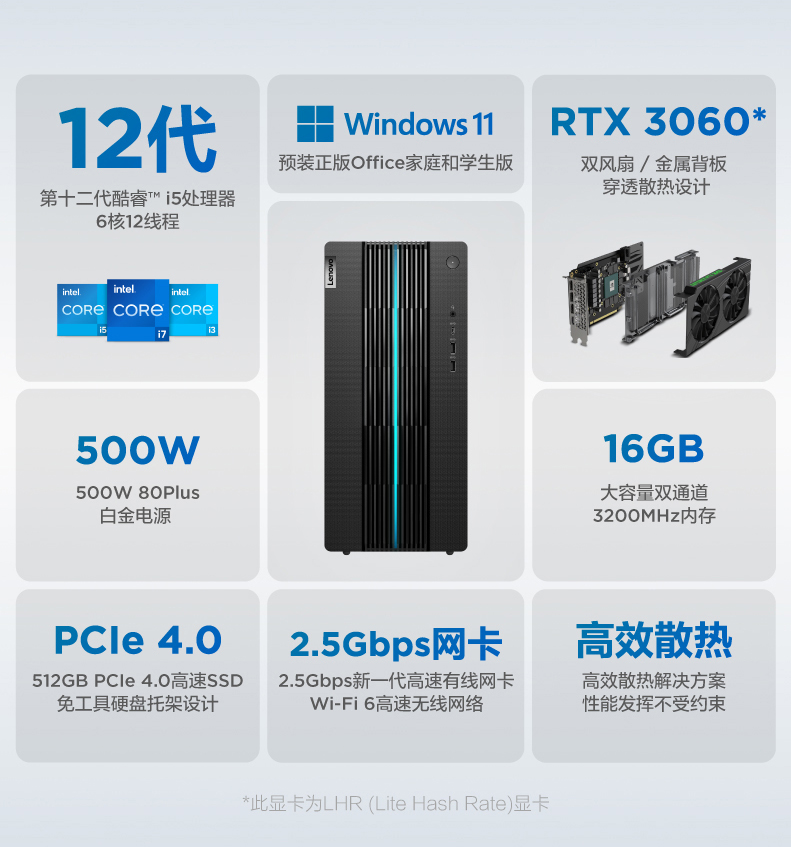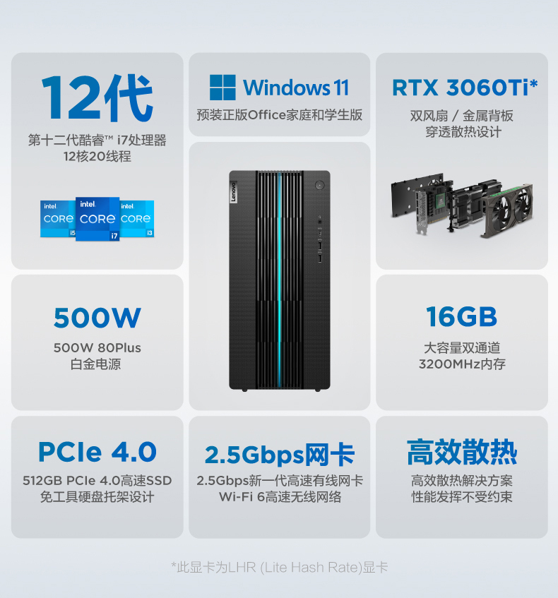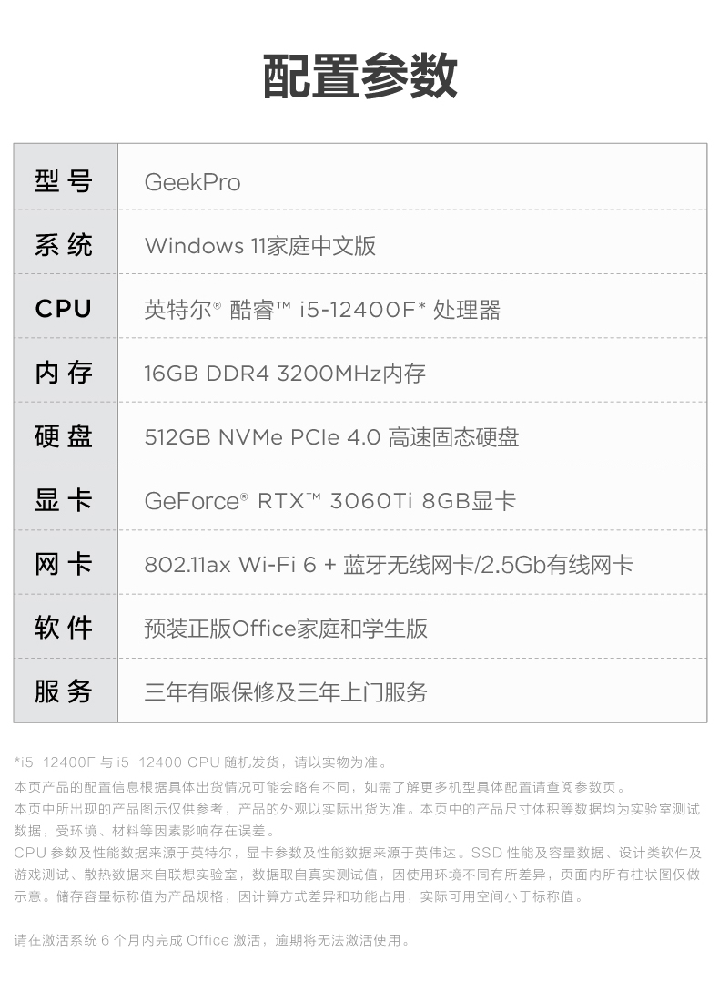 • 商品名称:【12代新品】联想GeekPro 2022 12代英特尔酷睿 Geek pro游戏设计师台式机电脑GTX1650S/1660S/RTX3060可选
